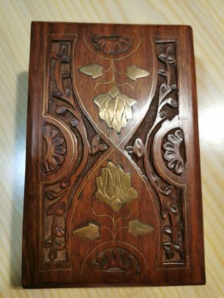 Cajita joyero madera con detalles dorados