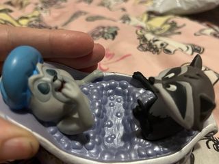 Figuras de los personajes Meeko ( mapache) y Percy ( bulldog) en la bañera , ornamentada con tonos dorados( son las mascotas de pocahontas y John Smith de Disney.) Comprado en Disney store es una figurita que tiene ranuras para poner tus joyas o pequeños objetos , estado nuevo , siempre expuesto en vitrina. colecion Disney store. gran calidad y detallados. muy buen acabados. objeto raro de encontrar - Personajes de la película Pocahontas. - Diseño detallado de los personajes. - Ideal para coleccionistas.