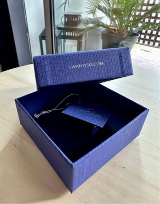 ¡Caja Swarovski original para pendientes, cajón azul elegante y cristalino! Swarovski original para organizar tus pendientes, joyas o accesorios con clase. Estado impecable, sin estrenar, perfecta para uso diario o regalo. Características: • Medidas: 8 cm largo x 5 cm ancho x 2 cm alto (compacta y útil) • Peso: 0,2 kg aprox. • Categoría: Otros (o Joyería) • Estado: Nuevo • Color: Azul cristal Swarovski • Marca: Swarovski (100% original) Ideal para guardar pendientes, anillos o pequeños detalles de lujo. Precio en tiendas nuevas: 15€ - 20€
