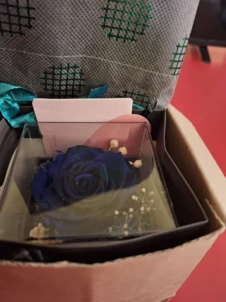 Joyero o pequeño estante decorativo con rosa azul