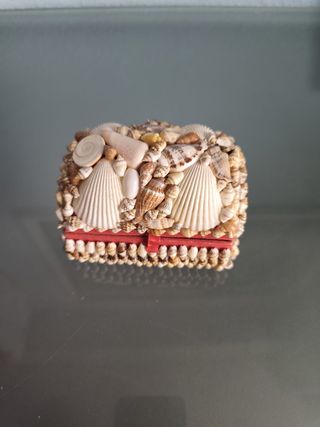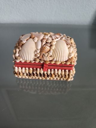 Bonito joyero decorado con una variedad de conchas marinas. La base tiene un acabado en color rojo. - Decoración de conchas naturales. - Base de color rojo. - Nuevo. - En mi perfil tengo otro un poco mas pequeño, los vendo tambien juntos, los dos por 9€