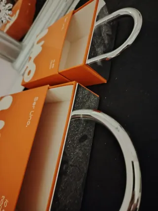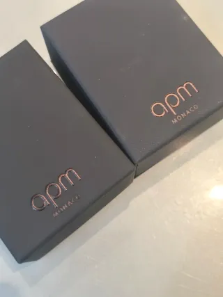 Pack de dos cajas vacias negras pequeñas de la marca APM Monaco. Pueden servir como joyero para guardar tus complementos. Están un poco rotas en la parte de abajo como se pueden ver en las fotos. Por dentro están suaves y en perfecto estado.
