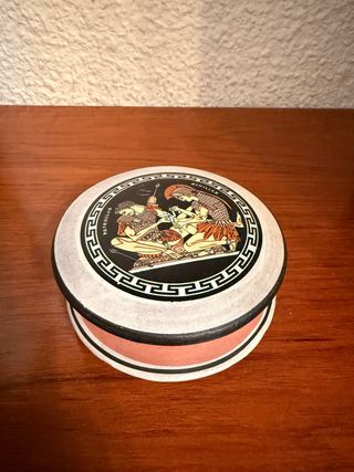 Pequeña cajita con un diseño inspirado en el arte asiático. - Decoración multicolor con detalles en rosa. - Motivo central con figuras clásicas.