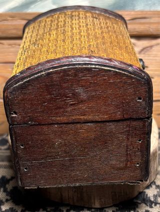 ****Joyero caja de música funciona la música con la tapa cerrada cuando le das cuerda por lo demás está bien conservado. -Una imitación a años baúles antiguos - Acabado imitación a madera y metal - Patas pequeñas en la base.