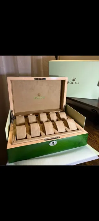 Caja para reloj Rolex Exterior en color verde. Interior en color beige.
