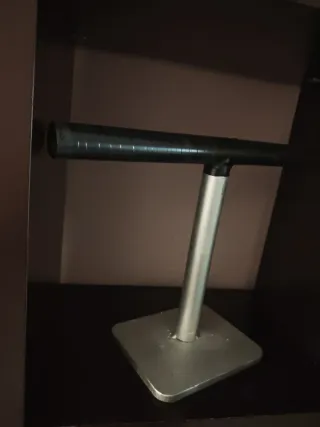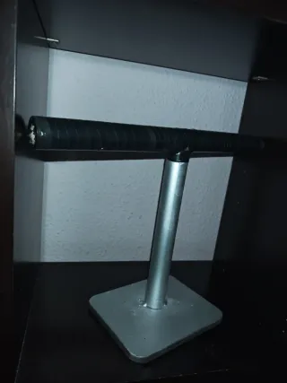 Expositor artesanal con base metálica y barra superior para exhibir relojes y pulseras. - Diseño elegante y funcional. - Barra superior con acabado negro.