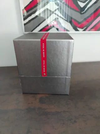 Caja original de la marca Tous. - Acabado plateado. - Cinta roja con el logo MADE IN TOUS.