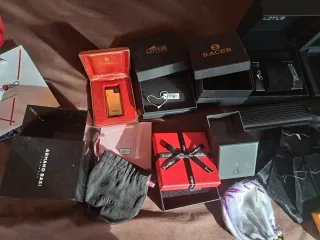 Lote de cajas vacías Lotus, Racer, Tous, CK, Armand Basi, swarovski y diversas marcas más bolsitas de regalo se ven en las fotos. Precio por todas las cajas juntas.
