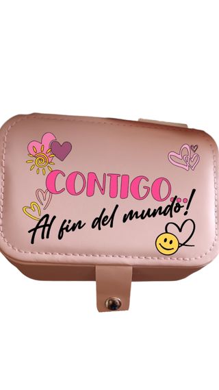 Precioso joyero de viaje, perfecto para organizar tus accesorios. - Diseño cuadrado. - Cierre de cremallera doble. - Asa lateral para facilitar el transporte. Una parte tiene espacio para cadenas y anillos y la otra parte tiene espejo y 4 compartimentos. Medidas aproximadas 10x10 de ancho y 8 cm de alto. Ideal para regalar estas fechas, pídelo con tiempo y llegará antes de Reyes. Se hacen por encargo, personalizado con el nombre que quieras, consulta sin compromiso.