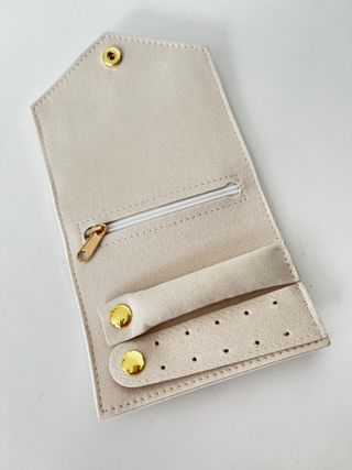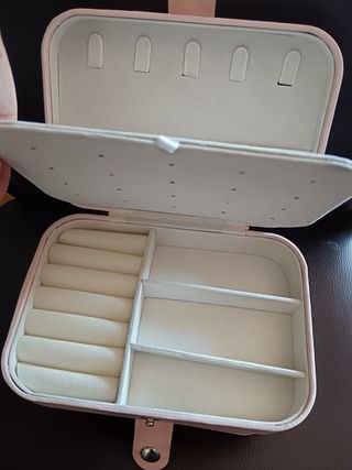 Elegante joyero para guardar tus accesorios. - Diseño compacto y práctico. - Cierre de cremallera para mayor seguridad. - Acabado suave al tacto.