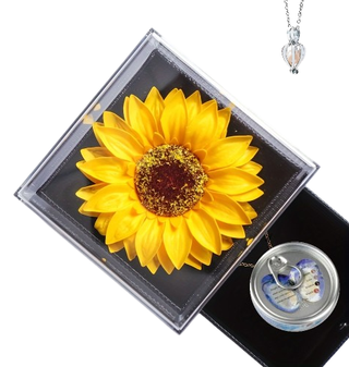 Caja de la perla del deseo con un eterno girasol muy realístico en un bonito joyero acompañando a un original regalo con su bolsa a conjunto. Preciosa presentación para una joya original como es la perla del deseo Catálogos productos disponibles en direcciones logo en perfil y FB: laperladeldeseo y laperladeldesoespaña. Ventas en Wallapop #laperladeldeseo #wishpearl #perla #deseo #joyas #jewelry #mar #ostra #colgante #collar #pendant #makeawish #pideundeseo #cajasconrosaseternas #rosaseternas #cajasconrosasdejabon #pulsera #accesorios #artesanal #hechoamano #handmade #art #newarrivals #marca24 #arte