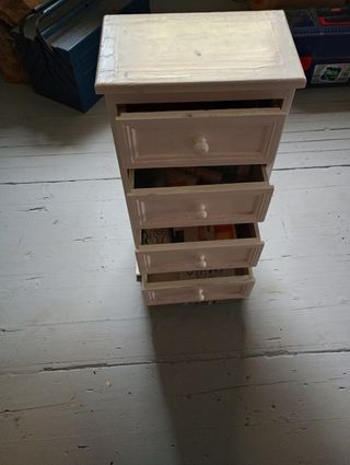 Bonito joyero de madera maciza con cinco cajones. Ideal para guardar tus joyas y accesorios. Es de color blanco , y tiene un diseño elegante y delicado. - Medidas compactas y diseño vertical. - Cinco cajones para organizar tus pertenencias.