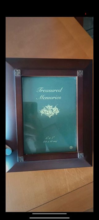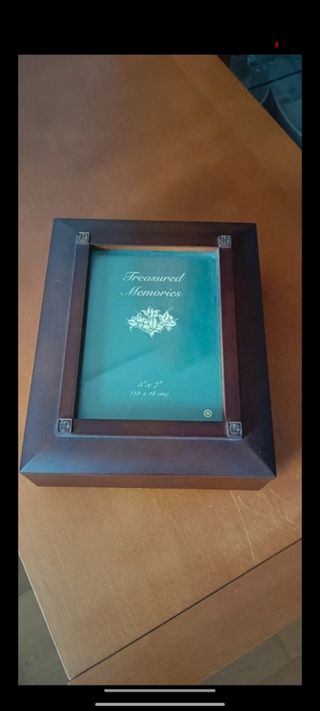 Caja joyero de madera con interior de terciopelo, la tapa de cristal tiene un compartimento para poner una foto de 5"x 7" (13 x 18 cm). Impecable, como nuevo. Diseño elegante y clásico. Impecable, como nuevo.