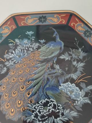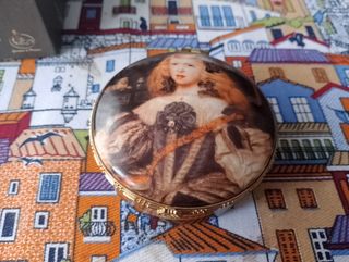 Conjunto de ocho mini joyeros o pastilleros de porcelana con delicados diseños y un plato porcelana decoración china Uno tiene la bisagra rota (última foto) Toda la colección 25€. Sueltos 3€ (mínimo 2 piezas) - Cada pieza presenta una decoración floral o de escena. - Acabados dorados en los bordes y bisagras. - Formas variadas: rectangulares, ovaladas, hexagonales y redondas.