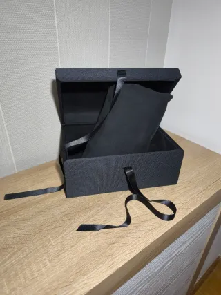 Elegante estuche joyero de la marca Chopard. Original. Con estuche de mano, para guardar gafas o teléfono. - Diseño en color negro. - Acabado texturizado. - Placa dorada con el logo de la marca. Ideal para regalo de navidad o reyes. #lujo #diseño #moda #joya #joyeria #marca #reloj #pulsera #colgante