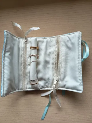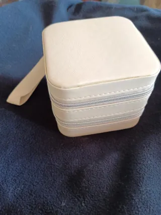 Sin usar. Joyero pequeño,ideal para llevar tus joyas de viaje.De forma cuadrada ,de tela y cierre de cremallera