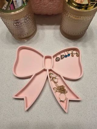 Bonita bandeja con forma de lazo, ideal para organizar tus joyas. - Diseño en forma de lazo. - Color rosa (si quiere sotro color hazmelo saber antes de comprar).