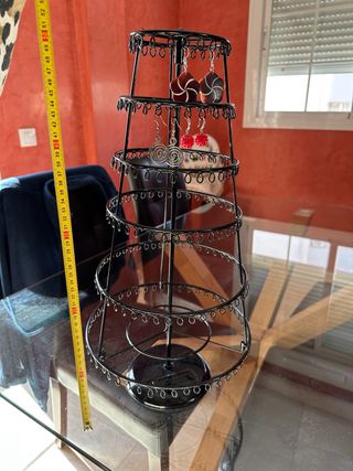 Elegante organizador de pendientes con un diseño de árbol. - Altura de 50 cm. - Estructura metálica. - Múltiples niveles para colgar joyas.