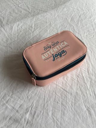 Precioso neceser joyero de la marca Mr. Wonderful. Es de color rosa y tiene un diseño elegante y delicado. Tiene la cremallera estropeada. - Ideal para guardar y organizar tus joyas. - Perfecto para llevar de viaje. - Cierre de cremallera.