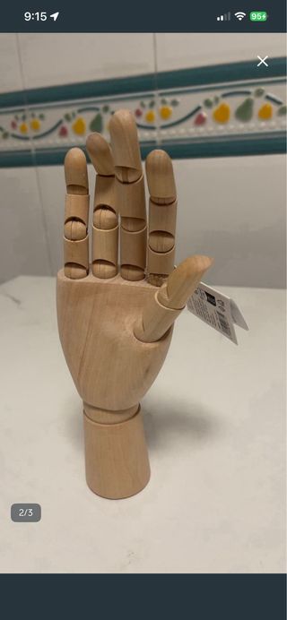 Original mano de madera, perfecta para exhibir y organizar tus anillos. Su diseño articulado permite colocarla en diferentes posiciones. - Material: Madera natural. - Ideal para joyerías o uso personal. - Base estable para exhibición. A mitad de precio. Ver última foto.