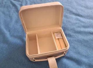 Joyero nuevo sin etiqueta, marca L'Oréal París. Color beige, y imitación piel, muy suave. Con 3 departamentos separados entre si. Lo compré porque lo confundí con neceser, y nunca lo usé, muy bonito y elegante me costó 25,70 precio negociable, ideal si usas anillos, joyas y demás, y perfecto para regalo.