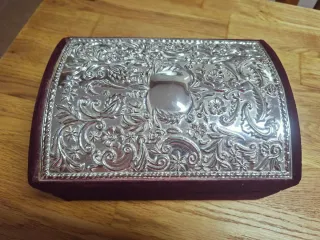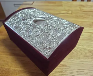 Maravilloso joyero hecho a mano por el orfebre granadino Rafael moreno muy bonito y muy buen estado con sus punzones correspondientes. Plata de Ley sin arañazos ni golpes