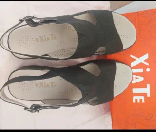Sandalias de la marca Xia Te en color negro. - Diseño con perforaciones. - Tira trasera ajustable con hebilla. - Suela cómoda con plantilla. - Talla 39.