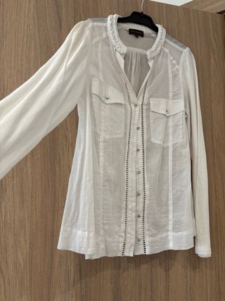 Preciosa camisa de la firma española Adolfo Domínguez. Un básico de lujo con un diseño minimalista y elegante, ideal tanto para looks de oficina como para un estilo casual sofisticado. • Marca: Adolfo Domínguez. • Estado: En perfecto estado (muy poco uso). • Tejido: Punto de alta calidad, muy suave al tacto y con una caída impecable. • Detalles: Diferentes bordados que hacen la prenda más preciosa aún. • Color: Blanco. • Talla: XS. Dispuesta a negociar precio.