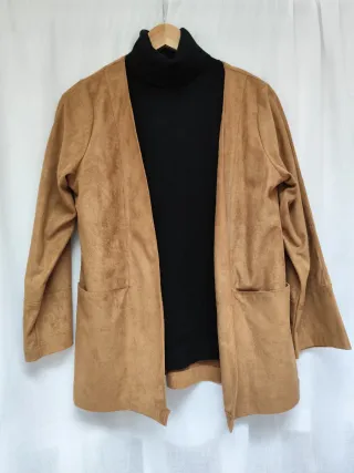 Kimono con un elegante efecto piel en tono marrón. Su diseño abierto lo hace muy versátil. - Diseño abierto. - Bolsillos frontales.
