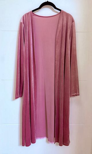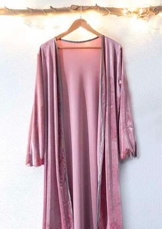 Kimono tendencia terciopelo, largo, abierto, en un precioso color rosa, ideal para combinar para eventos navideños, cenas o bodas de invierno con un cuello de pelo tendencia y tonos blancos, marrones, negros, etc. Composición 95% poliéster y 5% elastano (lycra), de una boutique de Marbella. Totalmente nuevo sin etiqueta, precio original de venta 39,95€. Tengo demasiada ropa en el vestidor y la que está por estrenar o practicamente nueva la estoy vendiendo.