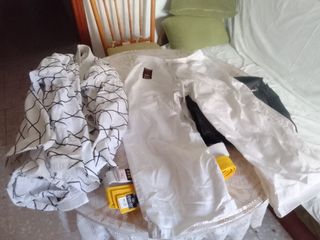 Se venden un kimono de aikido (talla 3/160 en etiqueta) y dos cinturones, uno blanco y otro amarillo. El kimono está en perfecto estado y usado unas 10 clases. guardado en su bolsa original. Los cinturones son de la marca DaeDo. - Incluye kimono y 2 cinturones. - El kimono está en su bolsa protectora. - Cinturones en buen estado. Si no se recoge en persona, el envio por In Post es mas economico y me viene mejor por disponibilidad, se encuentran en PARACUELLOS DE JARAMA CP 28860 MADRID