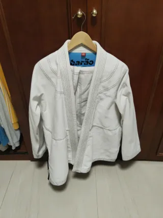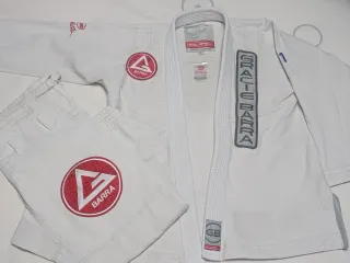 Kimono de Jiu Jitsu Gracie Barra en color blanco. Incluye chaqueta y pantalón. En muy buenas condiciones. - Parche de Gracie Barra en la solapa. - Logo de Gracie Barra en la manga. - Logo de GB en la parte inferior de la chaqueta.