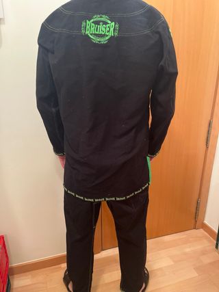 Kimono de Jiu-Jitsu marca Bruiser, en excelente estado, casi sin uso. Diseñado para entrenamientos y competiciones. - Color negro con detalles en verde neón. - Costuras reforzadas para mayor durabilidad. - Cuello y puños con tejido de alta resistencia. - Talla A2