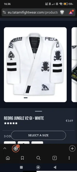 Kimono de Jiu Jitsu brasileño Tatami Reorg Jungle V2. - Diseño blanco con parches. - Estampado HEORG en la manga. - Logo GIZA en la parte inferior.