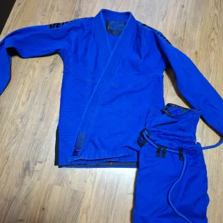 Kimono de artes marciales en color azul. Fue comprado por el profesor de jiu-jitsu cartagena LOLO Campeón del mundo en jiu-jitsu Ha sido usado 5 veces - Marca Venum. - Modelo Contender A1.