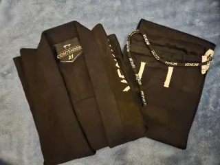 Kimono de Jiu Jitsu Tatami en color negro, talla M. Se encuentra en perfecto estado, casi sin uso. Es solo la parte de ARRIBA - Cierre frontal. - Cuello reforzado. - Puños y bajos con costuras de refuerzo.