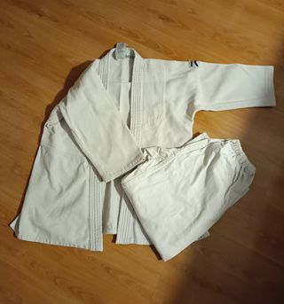 Vendo kimono de judo y aikido para hombre, en color blanco. Está en muy buen estado, prácticamente nuevo. - Talla: (Añadir talla) - Incluye chaqueta y pantalón. - Material ligero y cómodo.