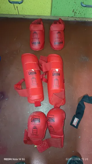 Equipamiento para karate u otras artes marciales, buen estado. -Marca laguna -Precio negociable - 2 Espinilleras y guantillas: ○ Color azul talla M ○ Color Rojo talla S - 4 Kimonos: ○ Talla 1 - 140 cm ○ Talla 3 - 160cm (2 unidades) ○ Talla 4 - 170cm -Guantillas sueltas: ○ Color azul talla L/Xl - Diferentes tipos de cinturones