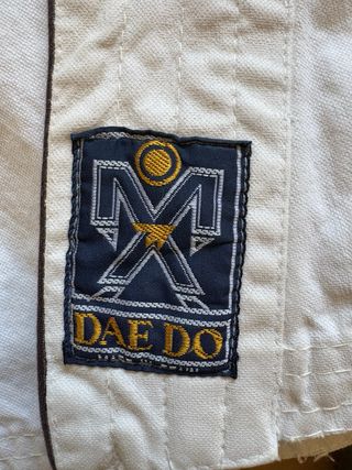 Conjunto de artes marciales compuesto por: - Kimono kárate blanco marca DAEDO 100% algodón. - Cinturón naranja. - Guantes de protección marca FUJI.