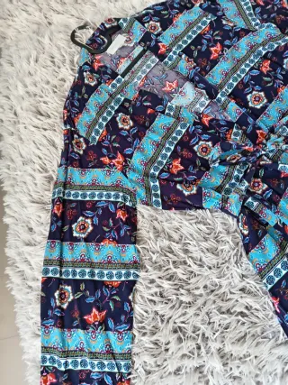 Kimono Zara Estampado Talla L Kimono de Zara con un diseño vibrante y colorido. - Estampado floral y geométrico. - Corte abierto. - Mangas amplias.