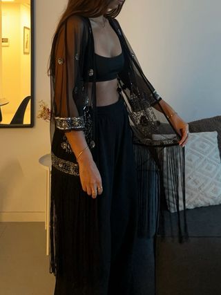 Chaqueta kimono boho chic negro