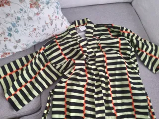 Conjunto de dos piezas compuesto por un kimono y un pantalón. Nunca lo estrené, está nuevo. - Kimono de manga larga y corte holgado. - Pantalón de pierna ancha con cintura elástica. - Diseño a rayas finas. Es talla S, pero es bastante amplio. Para una M está bien también.