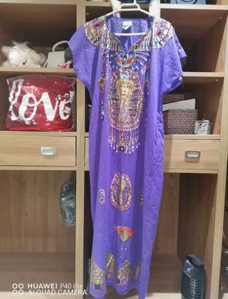 Caftán Egipcio Morado y Dorado Talla Única