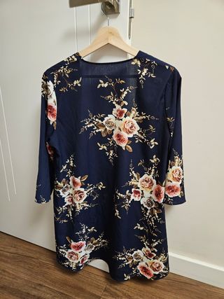 Kimono sobre camisa floral Da mucha talla. Dos bolsillos en la parte delantera