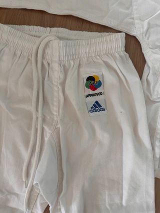 Kimono de karate para niño, ideal para entrenamientos y competiciones. - Tejido resistente y cómodo. - Cintura elástica con cordón para un ajuste seguro. - Parche oficial en la pierna.