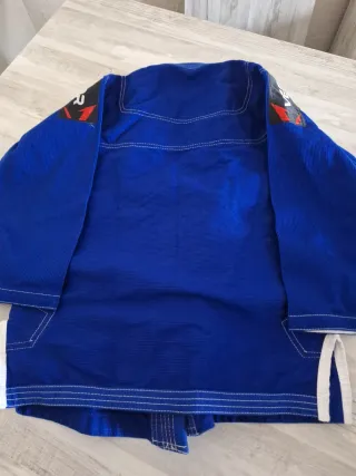 Kimono de Brazilian Jiu-Jitsu para niño. - Color azul - Costuras reforzadas - talla k3, para niños de unos 8 a 10 años, de 32 a 40 kilos, o de 137 a 152 cms de alto aproximadamente. - regalo pero talla errónea y no lo podemos cambiar, esta nuevo.