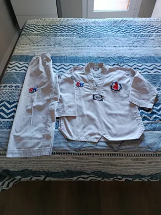 Traje de artes marciales para niños MARCA DECATLÓN, ideal para la práctica de karate o judo. Incluye chaqueta y pantalón y Cinturón blanco 220 cm. - TENGO 3 CONJUNTOS Y 1 CHAQUETA SUELTA Y 4 CINTURONES BLANCOS 220 CM. -2 Conjuntos NUEVOS con su etiqueta de Talla 130 cm. -1 Conjunto usado pero en excelentes condiciones con la etiqueta cortada talla 120 cm. -1 Chaqueta usada pero en excelente condicion con la etiqueta cortada 120 cm. -4 Cinturones Blancos 220 cm. ( dos nuevos y dos usados pero en excelentes condiciones) - Cierre de cuerdas en la chaqueta. - Cintura elástica en el pantalón.