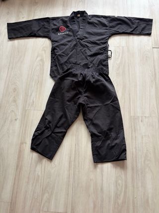 Kimono de karate para niño, ideal para entrenamientos y competiciones. - Chaqueta y pantalón. - Cierre con cordón en el pantalón. - Tejido resistente. - Está sin estrenar, porque le queda grande al peque.