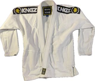 Kimono completo de Brazilian Jiu-Jitsu de Kingz (modelo Nano). Color negro con detalles en amarillo. Talla: A2L (ideal para persona alta y delgada) Incluye: • Chaqueta • Pantalón original Modelo ligero, perfecto para entrenamiento o competición. Estado: buen estado general, con desgaste normal por uso (ver fotos). Entrega en mano en Valencia.