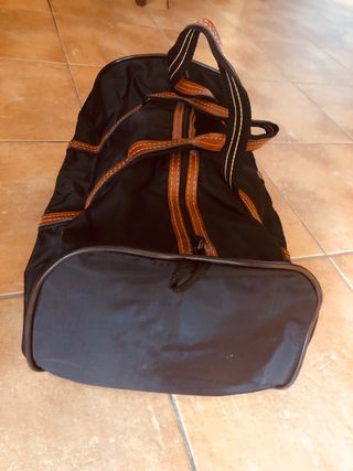 Práctica bolsa de deporte con un diseño moderno y detalles en piel. - Material exterior resistente. - Asas de mano y correa. - Cierre de cremallera.